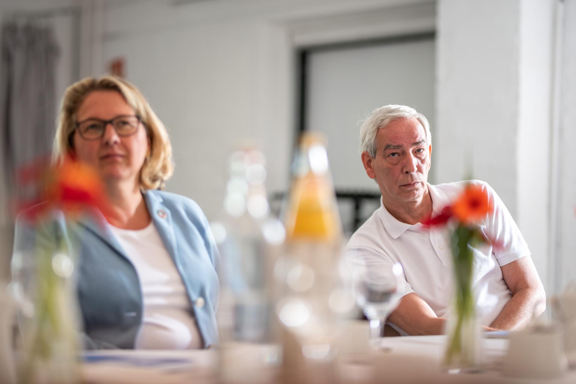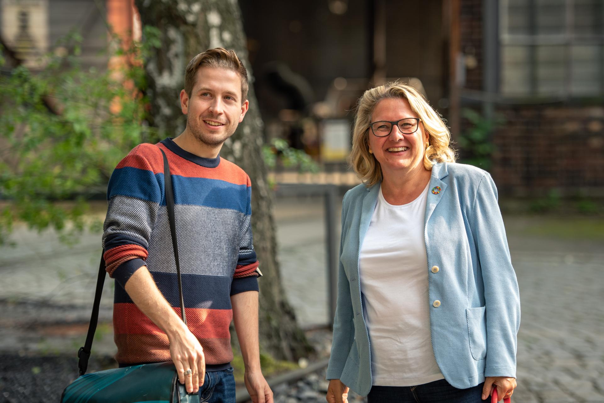 Svenja Schulze (SPD) & Andrej Springern (Teilnehmer Bürgerrat Klima), 25.08.2021, Foto: Robert Boden