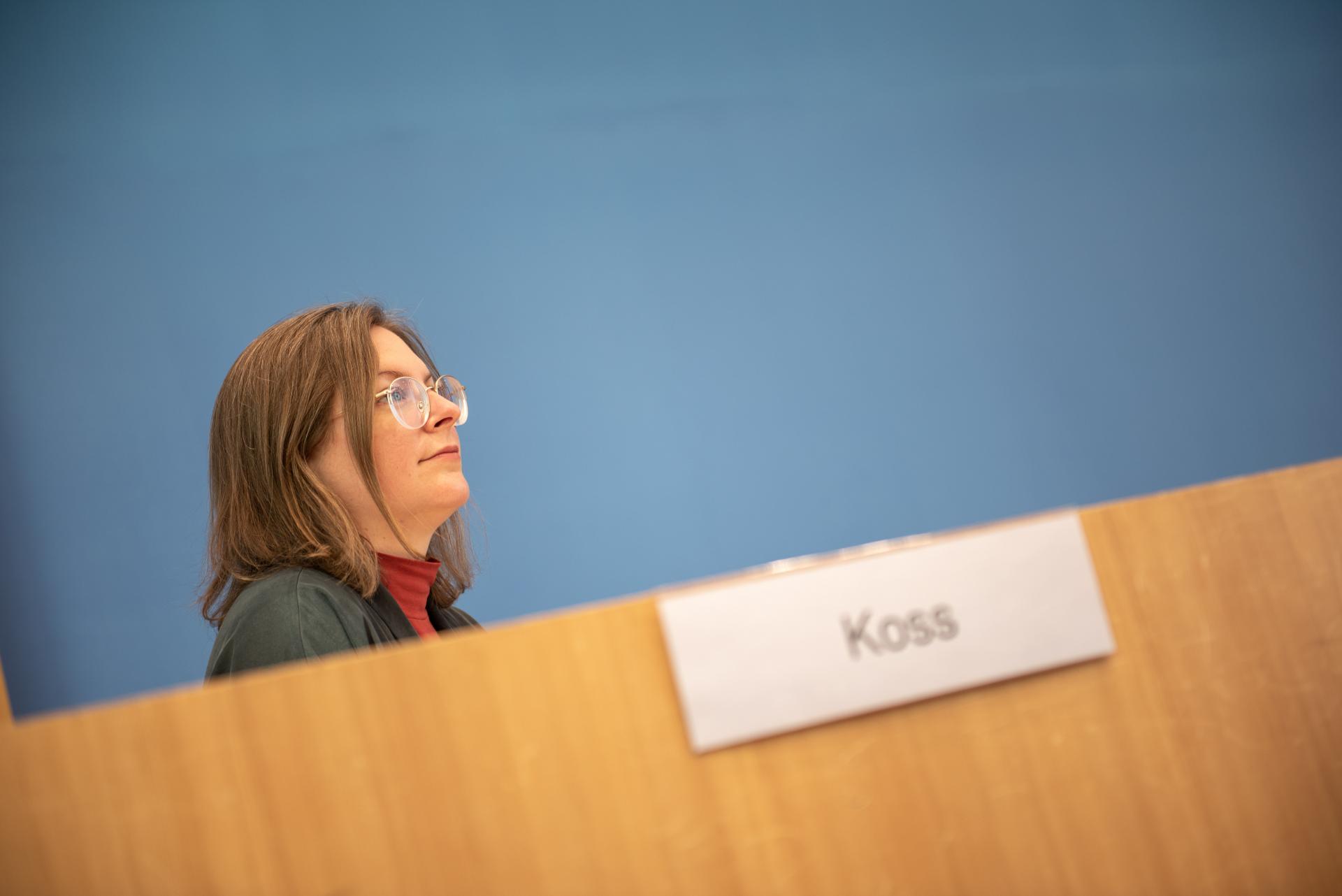 Sprecherin Rabea Koss bei der Bundespressekonferenz, 26.04.2021, Foto: Robert Boden